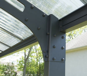 - Material: Durable, rust-resistant aluminium frame; 6 mm twin-wall polycarbonate roof panels