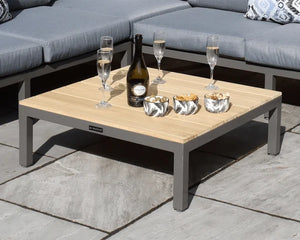 - Key Features: Modular configuration for flexible arrangements, Weather-resistant materials for durability, Thick, plush cushions for ultimate comfort, Elegant teak coffee table for drinks and snacks, Easy maintenance for hassle-free enjoyment