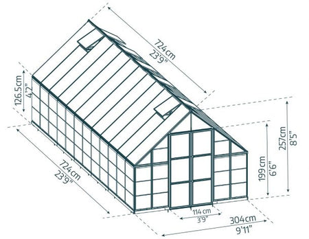 Balance Aluminium Frame 10ft x 24ft Polycarbonate Greenhouse Kit