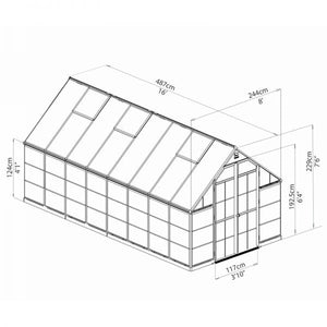 AnnetteBalance Aluminium Frame 8ft x 16ft Polycarbonate Greenhouse in Silver - Canopia by Palram