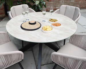 Bali 4 Seater Aluminium Garden Dining Set with 120cm Round Ceramic Table