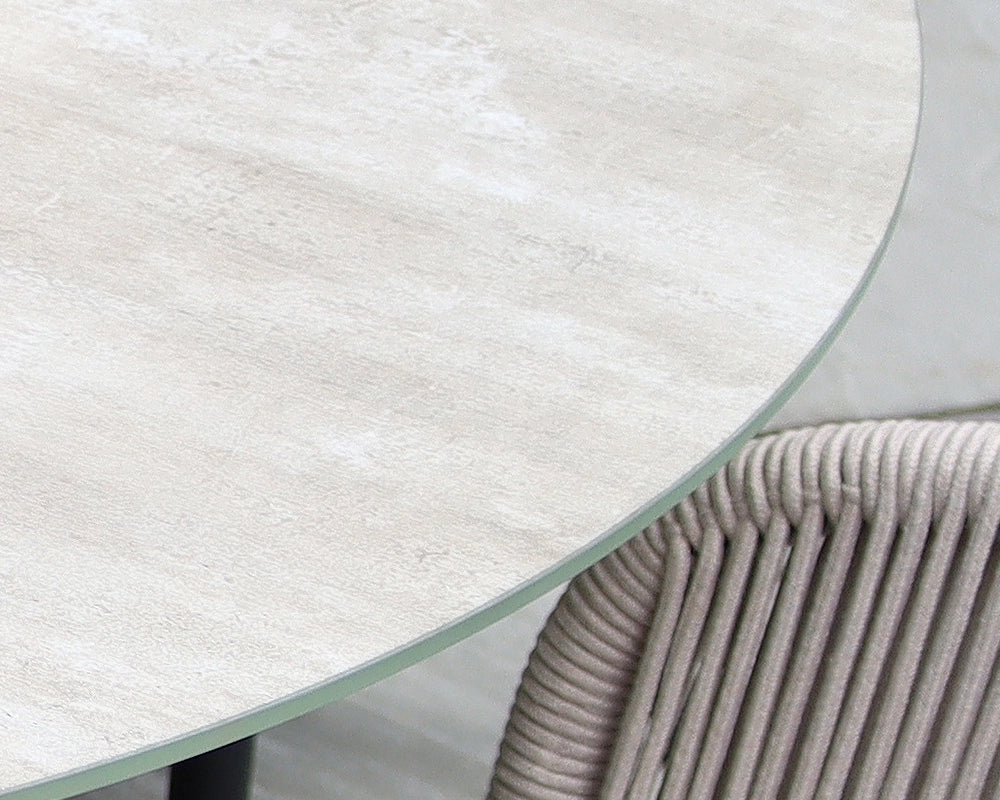 The Bali dining set boasts a contemporary aesthetic with sleek lines and a minimalist design, making it a versatile addition to any outdoor setting. The round table encourages easy conversation and interaction, while the lightweight construction allows for effortless rearrangement. Maintenance is a breeze, with removable cushion covers for washing and a ceramic surface that wipes clean in seconds.