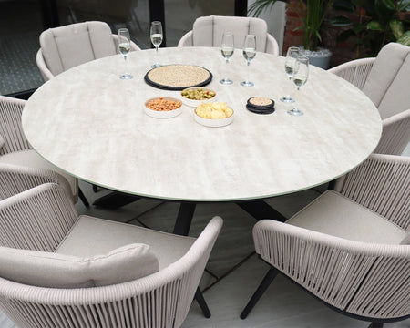 The Bali 6 Seater Aluminium Garden Dining Set is the perfect blend of elegance and practicality. With its spacious round ceramic table and six comfortable chairs, itβs ideal for outdoor dining experiences, whether casual or formal. Enjoy delightful meals under the sun or stars, creating cherished memories with loved ones.