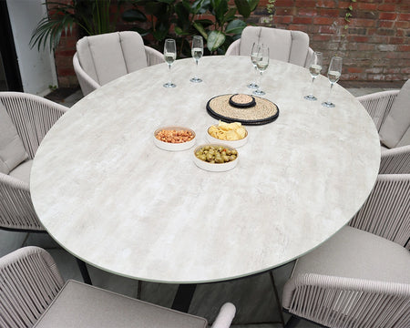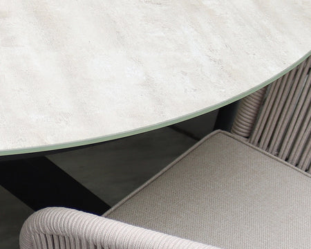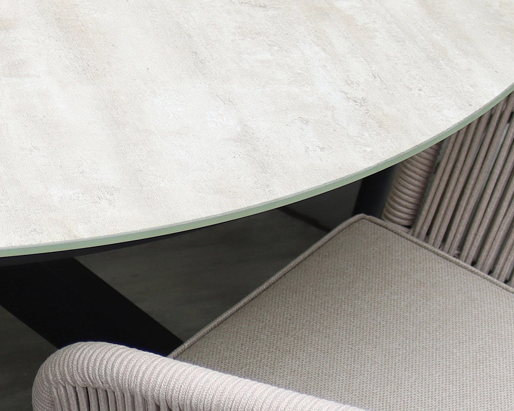 The modern design of the Bali dining set complements any outdoor decor, with clean lines and a neutral colour palette that seamlessly blends into your garden. The oval shape of the table optimises space, making it suitable for both large and smaller areas. Maintenance is a breeze; simply wipe down the ceramic surface after use to keep it looking pristine.