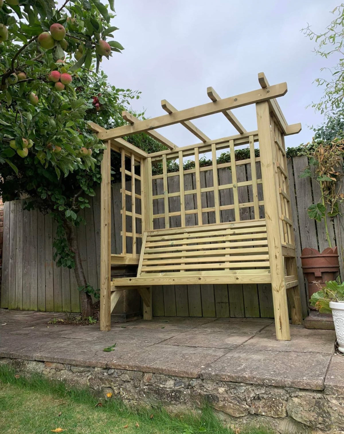 Crafted from robust, pressure-treated timber, the Beatrice arbour is built to withstand the elements, ensuring longevity and resistance to rot for up to 20 years. Each piece is handmade in the UK, reflecting a commitment to quality and craftsmanship. The thick timber construction and fully braced design provide exceptional stability, allowing you to enjoy your outdoor space with peace of mind.