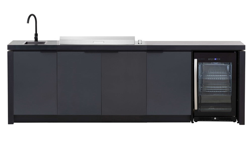 BeefEater Cabinex Outdoor Kitchens combine beauty with functionality to offer a modern, sleek design, all custom made and easy to install. Gone is the need for expensive design work and large installation costs. All that is required is a solid base, and the Cabinex can be up and running. Combining BeefEater's high quality range of gas barbecues and associated equipment, such as beautiful glass fronted fridges and matt black sinks & taps with Cabinex robust aluminium framing system which offers a solid, robust installation. This stunning range features everything for outdoor entertaining in a simple package. Choose from one of six designs to give your outdoor space the elegance it deserves, with minimal effort for you.