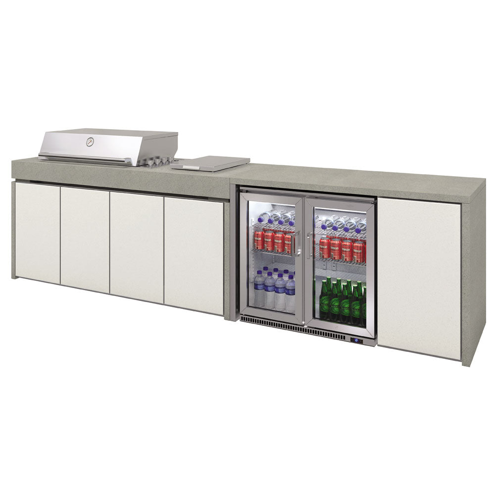 BeefEater Harmony Outdoor Kitchen with Proline 6 Burner Gas BBQ, Side Burner and Double Fridge