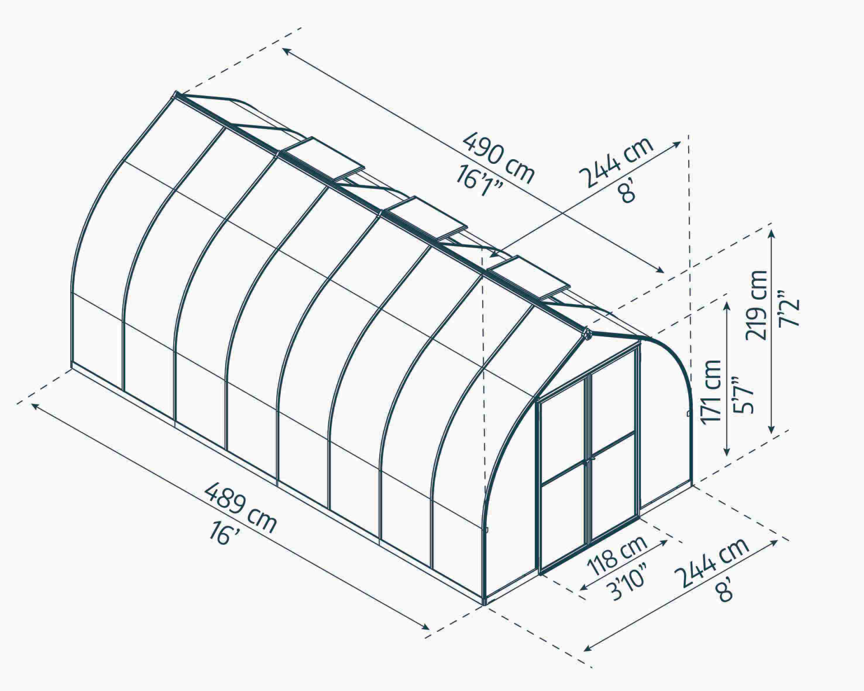 The Bella Aluminium Frame Greenhouse is your ultimate gardening companion, designed to create an ideal microclimate for your plants. With ample space measuring 8ft by 16ft, it allows you to cultivate a diverse range of flora, from delicate flowers to hearty vegetables. This greenhouse is perfect for seed starting, ensuring your plants get the best start in life, while also providing protection from pests and harsh weather conditions.