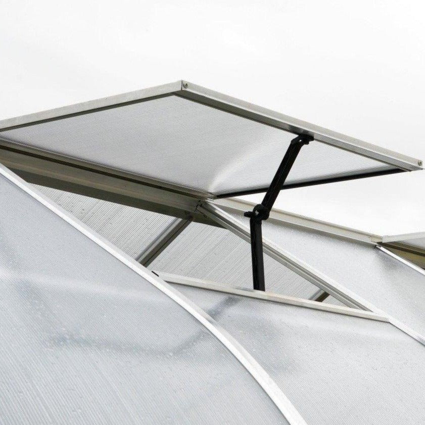 Constructed with a robust aluminium frame, this greenhouse is built to last. The high-impact resistant polycarbonate panels not only withstand the rigours of the British climate but also diffuse sunlight effectively, allowing your plants to thrive. The double-walled design enhances insulation, ensuring that your plants are kept warm in winter and cool in summer. Plus, the UV protection means your plants are shielded from harmful rays, promoting healthy growth without the risk of sunburn.