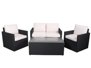 Berlin Black Rattan Garden Lounge Set - 2 Seater Sofa, 2 Armchairs & Table
