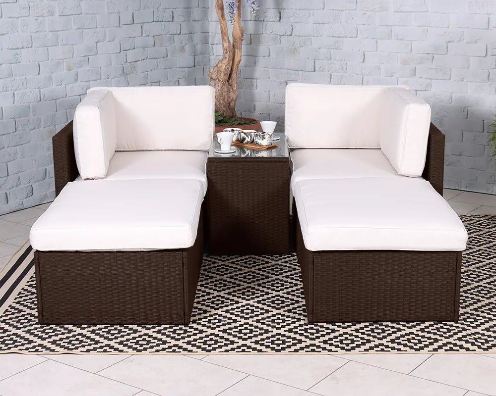 With its chic brown rattan finish and neutral cream cushions, this set complements a variety of outdoor aesthetics, from contemporary to traditional. The easy-to-maintain materials mean you can spend more time enjoying your garden and less time worrying about upkeep. Plus, the lightweight design allows for effortless rearrangement, so you can adapt your space for any occasion.