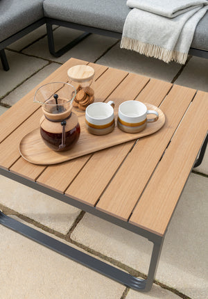 Crafted with quality in mind, the powder-coated aluminium frame is not only rust-resistant but also lightweight, allowing for easy rearrangement in your outdoor space. The poly wood tabletops mimic the look of natural wood while offering superior weather resistance, ensuring that your furniture remains beautiful and functional for years to come. Plus, the cushions come with a built-in shower-resistant coating and 'easy care' stain protection, making them perfect for unpredictable British weather.