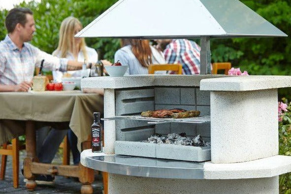Crafted from high-quality concrete, the Venedig BBQ boasts a durable and weather-resistant design that ensures longevity. The stainless steel hood not only adds a contemporary touch but also aids in effective heat retention and smoke management. With four adjustable cooking heights and a heavy-duty chrome grill, this BBQ is built for versatility and ease of use, allowing you to grill to perfection every time.