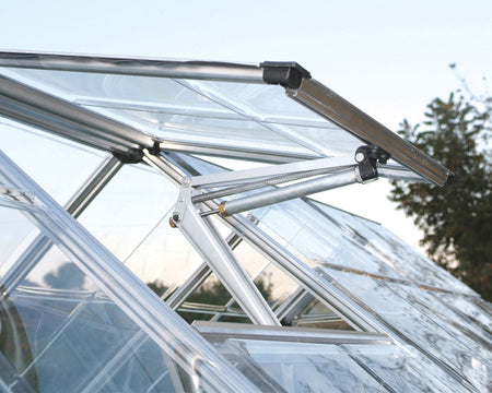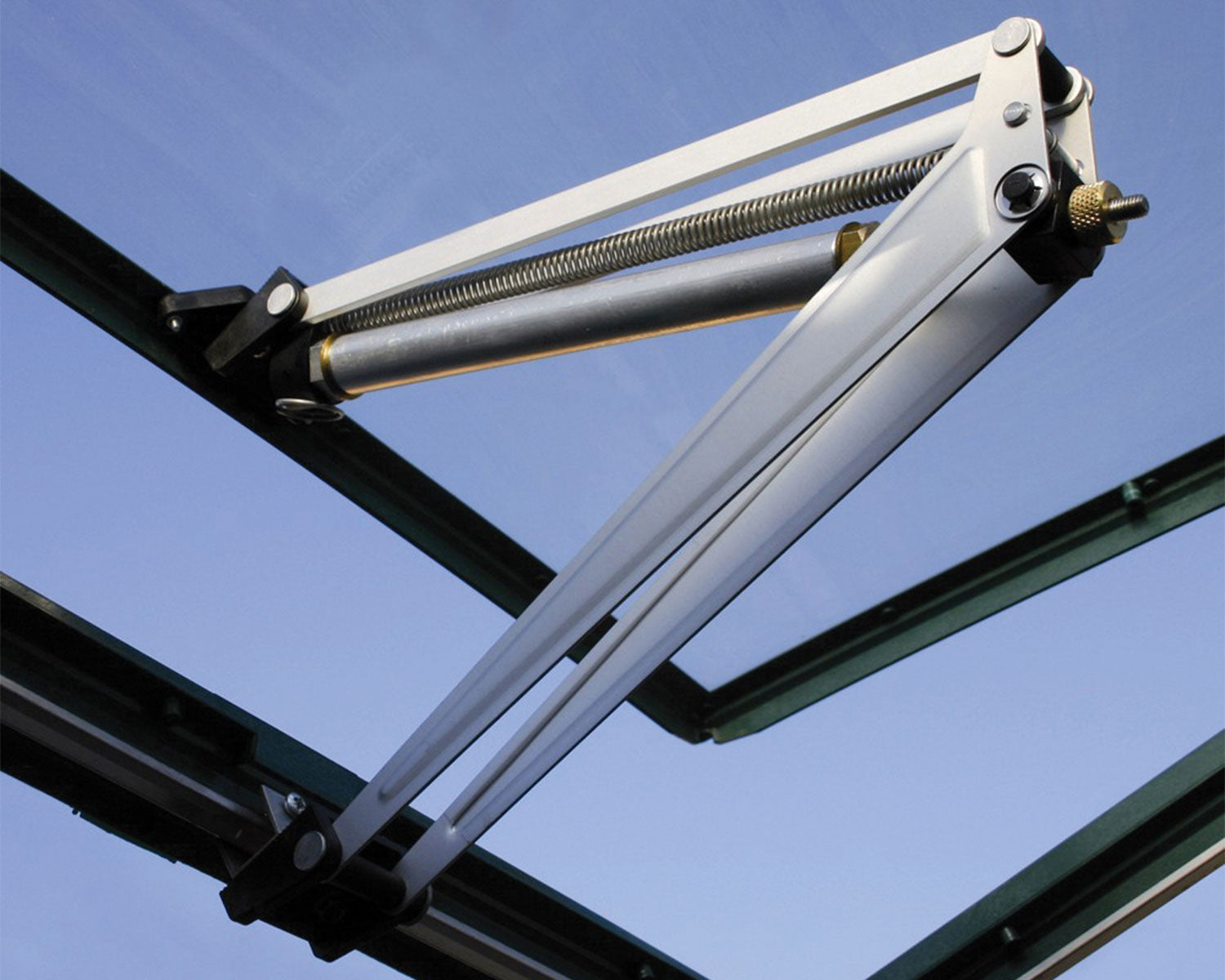 Opens roof vent automatically as the temperature warms for air circulation and heat relief, closes when the temperature cools Mechanic system, solar-powered – start opening point: 12-15C (53.6-59F) Easy to install Suitable for all Palram greenhouses