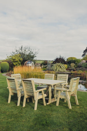 Clover Chunky Wooden Garden Dining Set with Table & 6 Chairs