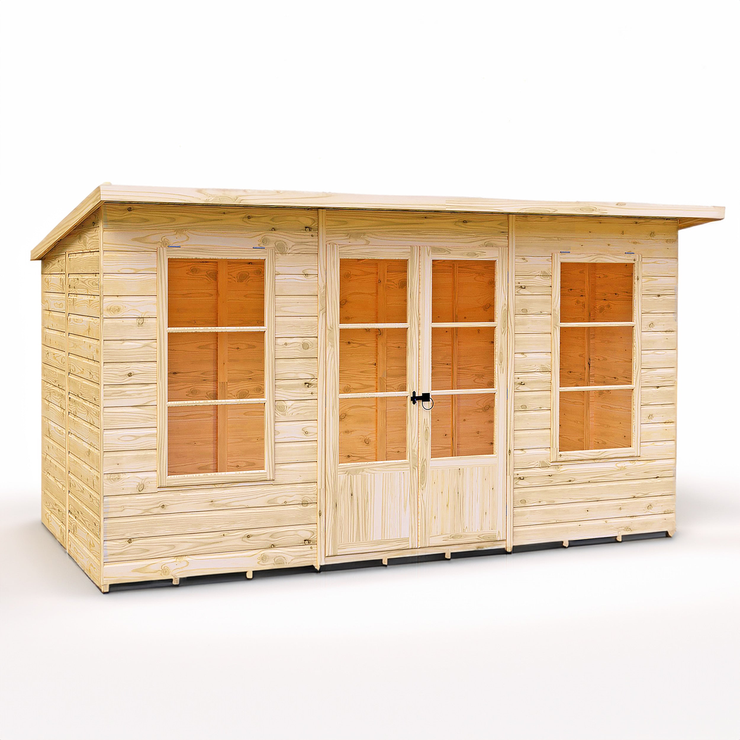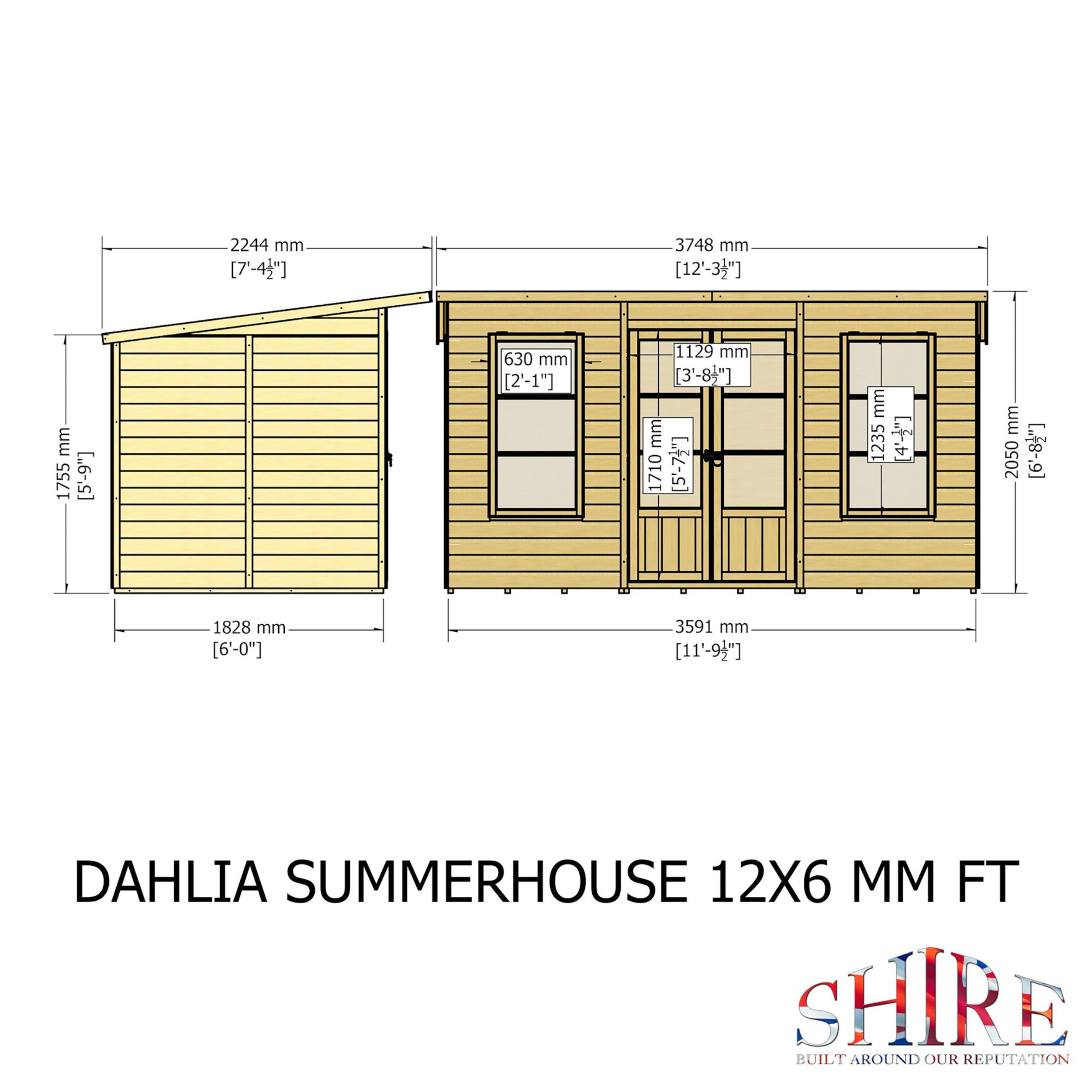 Crafted from sustainably sourced timber, the Dahlia Summerhouse boasts a robust construction designed to withstand the elements. The overlap cladding not only enhances its durability but also provides excellent insulation, ensuring comfort throughout the year. With a dip-treated base coat preservative, you can easily apply your choice of top coat for added protection. The 34mm framing adds strength, while the 8mm OSB roof and 9mm OSB floor ensure a solid foundation. Plus, Shire offers a warranty that underscores their commitment to quality.