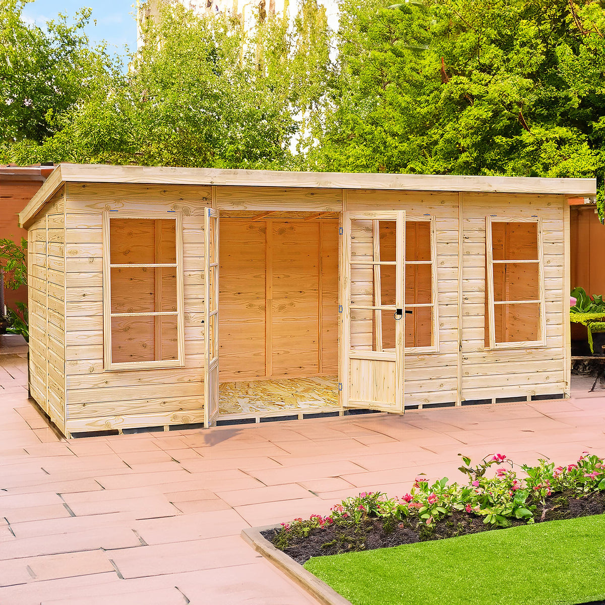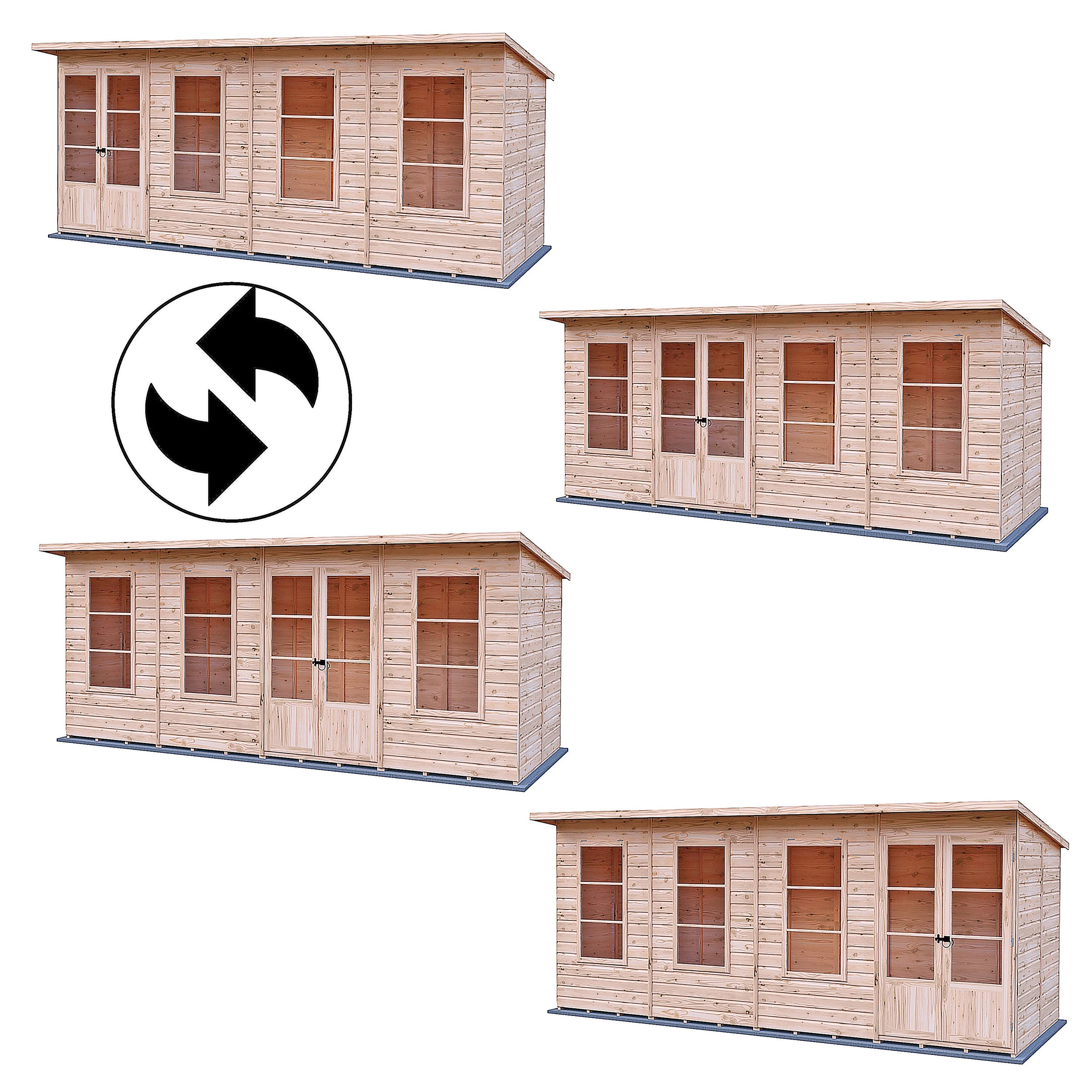 Designed with accessibility in mind, the centrally located double doors make moving furniture and equipment in and out a breeze. The three large windows allow for excellent ventilation and a bright, airy atmosphere, making it a delightful space to spend time in. The interior can be customised to suit your needs, whether you require storage solutions or a comfortable workspace. Maintenance is minimal, requiring only periodic treatment to keep the wood in top condition, allowing you to focus on enjoying your new summerhouse.