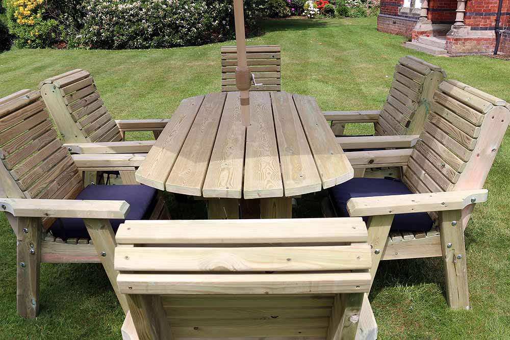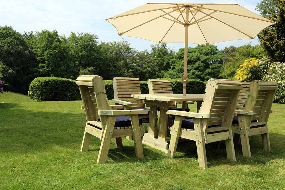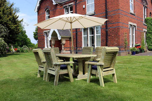 Crafted from thick, premium quality timber, this dining set is built to last. Each piece is handmade in the UK, ensuring meticulous attention to detail and superior craftsmanship. The timber is pressure-treated to resist rot for up to 20 years, allowing you to enjoy your outdoor dining experience without the worry of wear and tear. With a fully braced structure, this set promises stability and durability, making it a wise investment for your outdoor space.