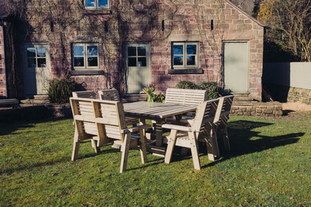 Crafted from thick, pressure-treated timber, this dining set is built to last. The tanalised finish protects against rot for up to 20 years, ensuring that your investment stands the test of time. Each piece is handmade in the UK, reflecting a commitment to quality and craftsmanship. The robust construction features fully braced supports, providing stability and peace of mind during your outdoor gatherings.