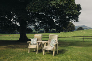 AnnetteErgo Chunky Wooden Garden Love Seat with Square Tray - Churnet Valley
