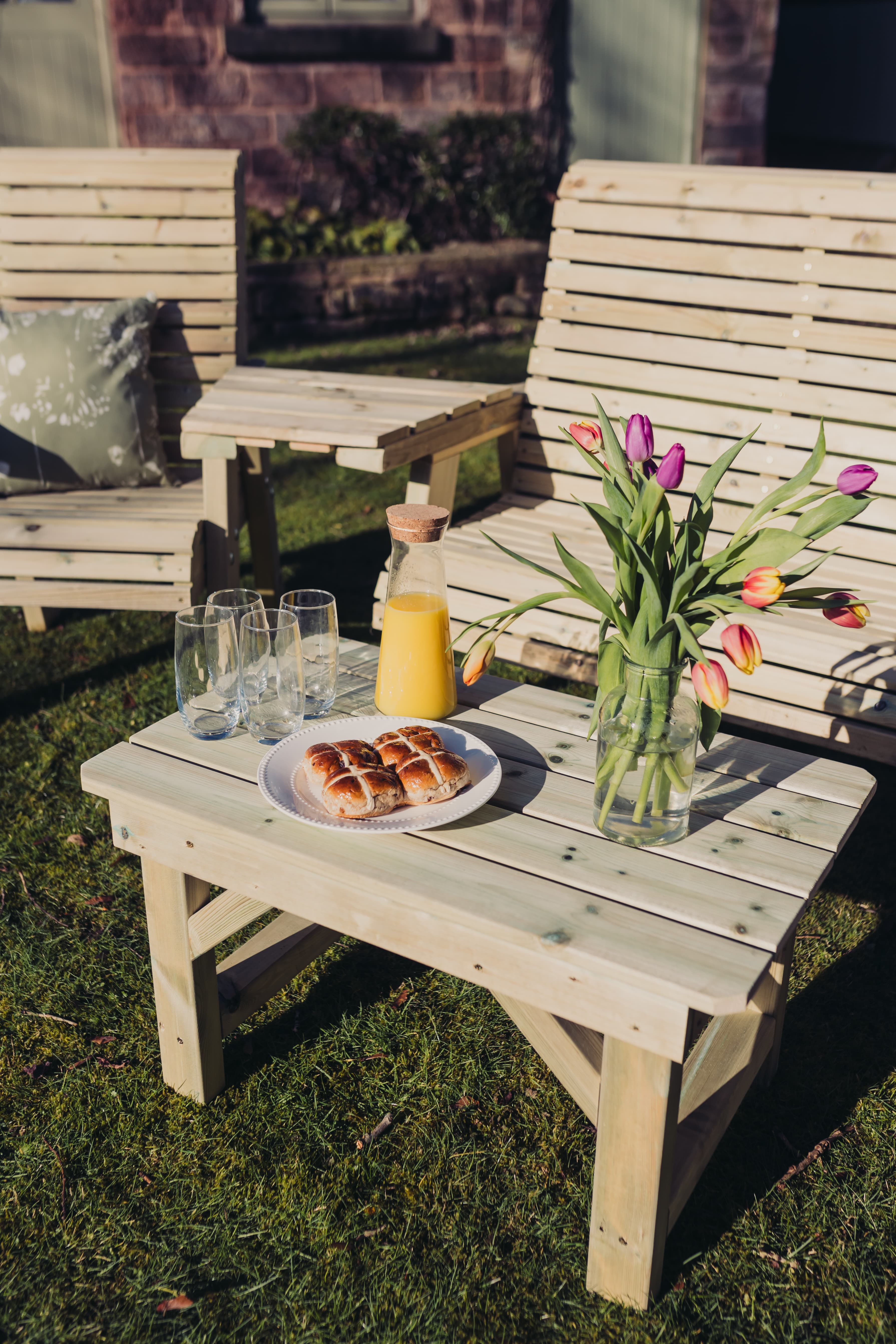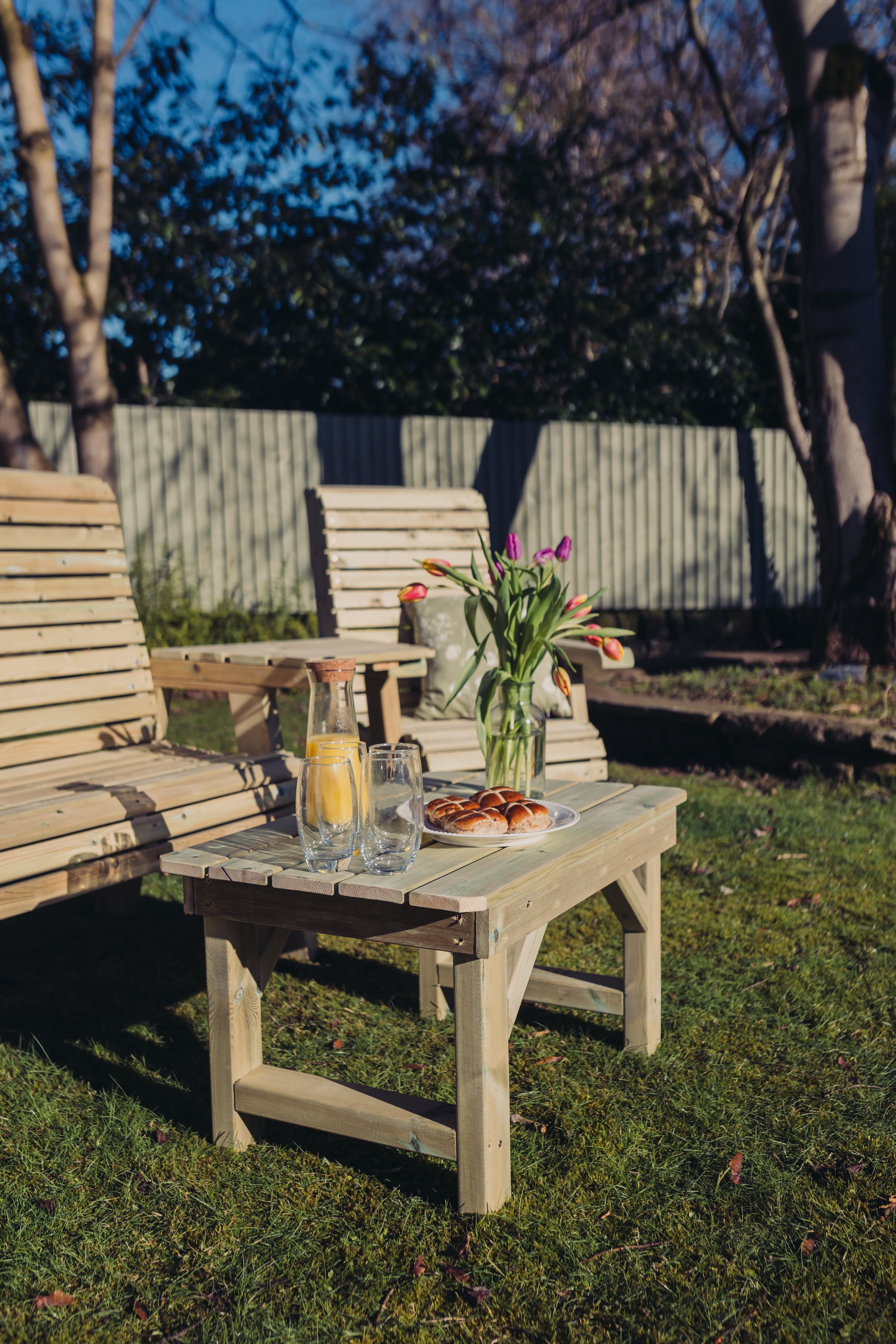 Crafted from thick, high-quality timber, this love seat set is built to withstand the elements. The pressure treatment process ensures that the wood is resistant to rot for up to 20 years, providing peace of mind for your investment. Each piece is handmade in the UK, showcasing exceptional craftsmanship and attention to detail. The robust construction means you can enjoy this set for many seasons to come, making it a reliable addition to your outdoor furniture collection.