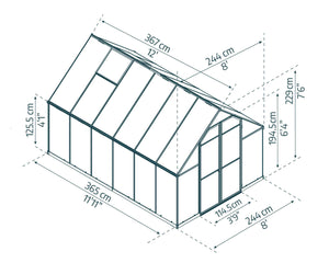 AnnetteEssence Aluminium Frame 8ft x 12ft Silver Polycarbonate Greenhouse - Canopia by Palram
