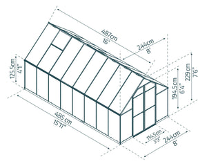 The Essence Aluminium Frame Greenhouse is your ultimate gardening companion, designed to cater to both novice and seasoned gardeners. With its generous dimensions of 8ft by 16ft, this greenhouse provides ample space for a variety of plants, making it ideal for starting seedlings, growing herbs, vegetables, and even overwintering delicate flowers. Its robust construction ensures that your plants are protected from harsh weather conditions, allowing you to enjoy gardening throughout the seasons.