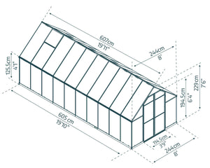 The Essence Aluminium Frame Greenhouse is your ultimate gardening companion, designed to provide ample space for all your horticultural activities. With its generous dimensions of 8ft by 20ft, this greenhouse is perfect for both novice and seasoned gardeners looking to extend their growing season. Whether you're starting seedlings in early spring or protecting your plants from autumn frosts, this greenhouse creates a nurturing environment that encourages healthy growth.