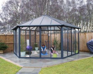 Garda Hexagon Aluminium Garden Grey Gazebo & Petgola with 6 Sliding Double Doors