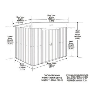 Globel 6x4ft Low Pent Small Metal Garden Shed - Green