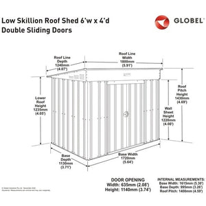 Globel 6x4ft Low Pent Metal Garden Shed - Grey