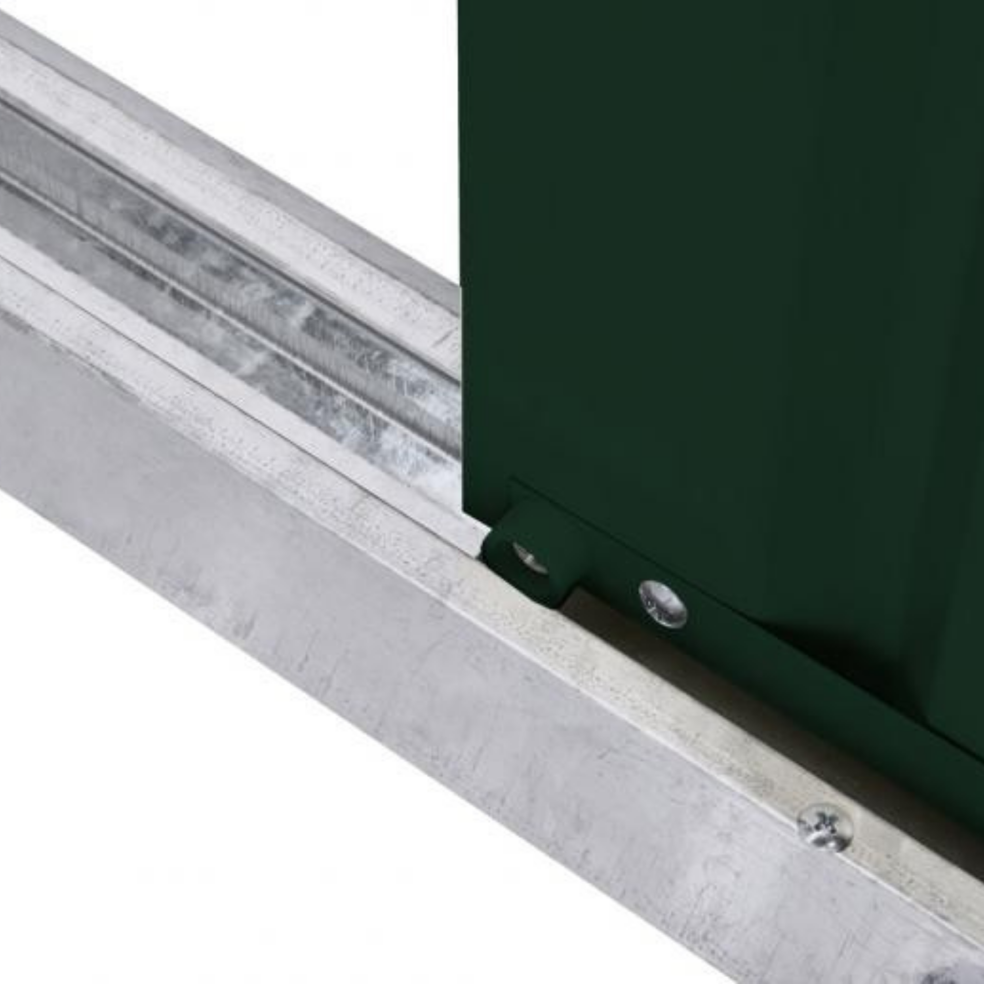 The Globel Pent fronted premium garden shed is a pent roof shed manufactured from high tensile, hot-dipped galvanized steel throughout. This product is the final result of two years of research and development by those who have been involved with light-clad metal sheds for many years. A combined effort between a factory with brand new steel roll forming equipment and a research team has now produced a shed which is stronger, more durable and easier to build but remains in a traditional color combination. This is development in light-clad metal sheds at the best value price. Globel sheds are perfect for caravan parks where non-combustible storage sheds are compulsory and will provide a rust-free, practical storage solution for a minimum warranty period of 15 years. These products are the highest specification lightweight metal garden sheds on the market. Apart from the high grade of 0.3mm steel and paint finish, they have ventilated gables and all standard buildings have the tallest wall height available. The frame and base rails are made from solid heavy gauge galvanized steel, the parts and their fixings are simple and straightforward to assemble. Each door, the door glide & track layout have been designed with strength and simplicity in mind. The door glide itself has been completely redesigned to provide a more stable and well-balanced door opening, providing you with a high-quality range of metal sheds. This Globel Pent metal shed is a secure metal storage shed, perfect for keeping your garden tools inside. The galvanized steel ensures the shed is weather resistant, meaning this metal building is extra strong. Since this she is available in a range of sizes too, you're bound to find a shed that fits your needs. A huge effort has gone into the preparation of the instruction manual to ensure that it is as ‘user friendly’ and as informative as possible. Our suppliers have sought input and advice from many trusted sources, enabling them to compile a manual which helps to ensure the assembly is more of a pleasure than a chore!! Nominal model sizes are based on the roof dimensions.