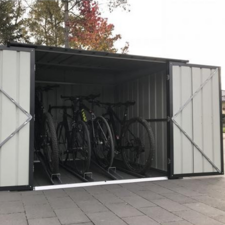 The Globel Metal Bicycle Store is perfect for storing up to 4 bikes. This metal shed is made from hot-dipped galvanized walls that will protect them from most weather conditions. If you're looking for extra security for peace of mind then metal bike storage sheds are the ideal option. You're able to keep a wide range of bikes in this metal shed, including adult bikes, road bikes and kids' bikes. These sheds are ideally placed on top of a concrete base, ensuring your weather-resistant bike shed keeps your bike secure. Built with a robust framework and a convenient large double door access it includes a pad lockable door bolt (padlock not included) to place your bikes behind. If a secure bike is high on your priorities then this shed is perfect. This is a highly attractive and solid bicycle shed, it will be suitable for most weather conditions ensuring your bikes stay dry and protected. The model has a sloping roof and a finish adaptable to any environment. It is ideal to be placed in areas with limited space. This is an easy-to-assemble shed with the instructions included, we recommend it is installed on a levelled and completely smooth concrete surface to ensure stability. The bicycle store can also store either equipment or tools.
