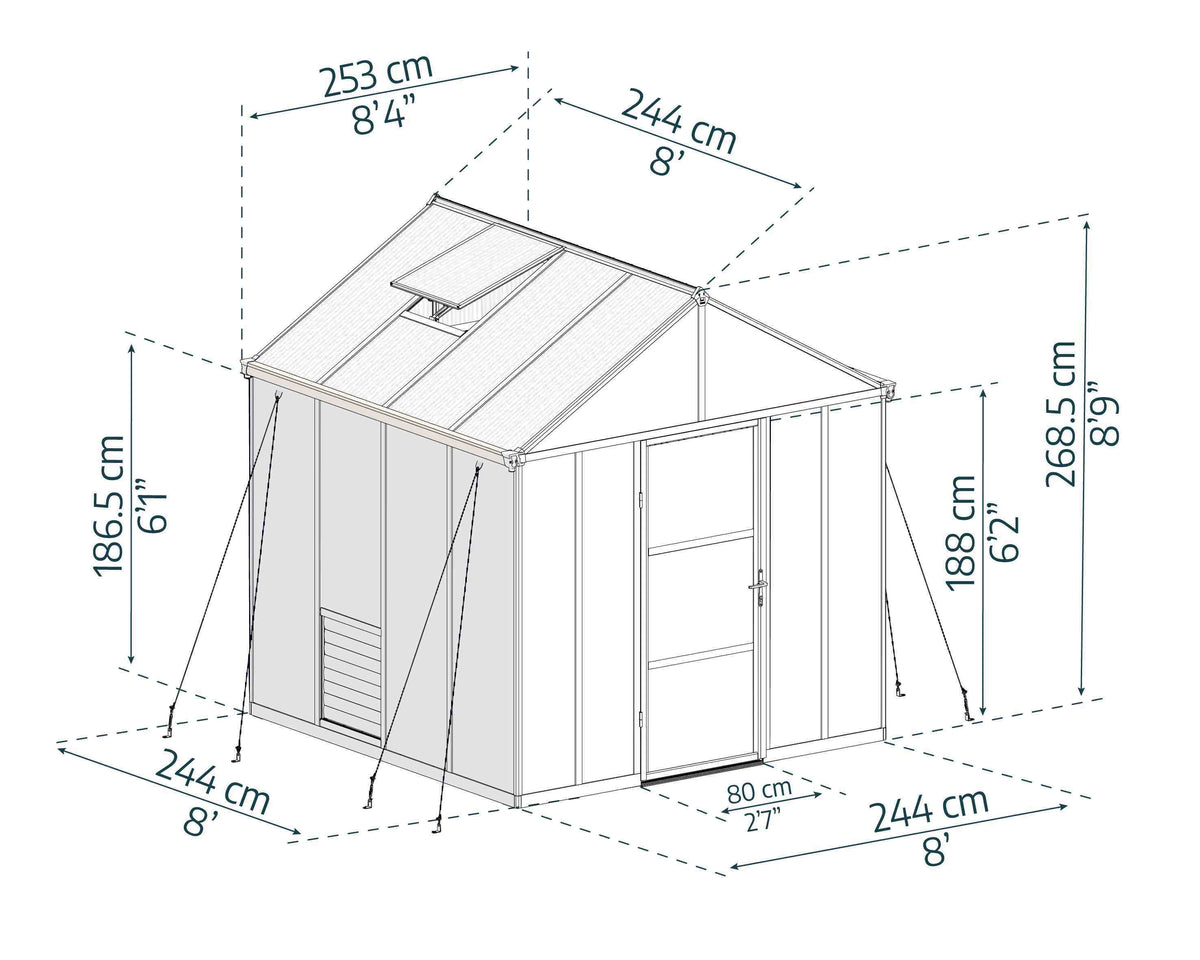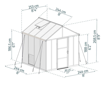 The Glory Aluminium Frame Greenhouse is designed for both novice and seasoned gardeners, offering a spacious 8ft x 8ft area to cultivate your green thumb. This premium greenhouse allows for year-round gardening, providing a controlled environment that protects your plants from harsh weather conditions. With its stylish grey finish, it seamlessly integrates into any garden aesthetic, making it not just functional but also visually appealing.