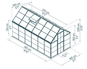 Harmony Aluminium Frame 6ft x 12ft Green Polycarbonate Greenhouse - Canopia by Palram