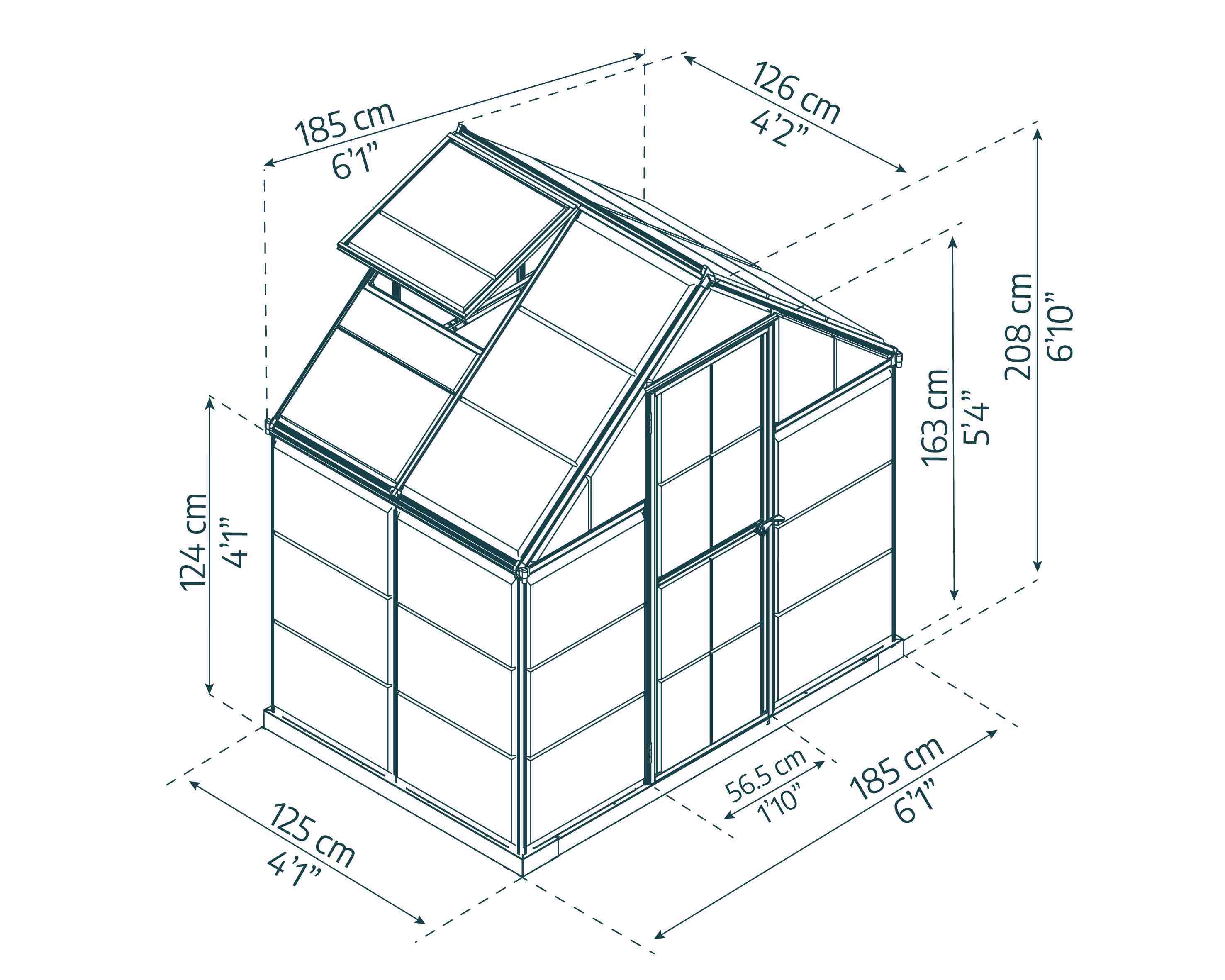 Constructed with a robust aluminium frame, this greenhouse is built to last. The powder-coated green finish not only adds a touch of elegance but also ensures resistance to rust and corrosion. The polycarbonate panels are lightweight yet incredibly strong, offering superior insulation and UV protection. Unlike traditional glass, these panels are virtually unbreakable, providing peace of mind while ensuring your plants receive the natural light they need to flourish.