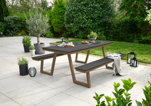 Heydon Wood Look Picnic Bench - Wood Look Frame - Dk Grey Polywood