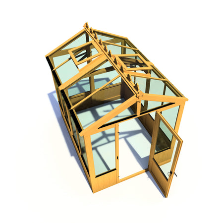 Crafted with care, the Holkham greenhouse features a robust wooden frame made from slow-grown timber, ensuring durability and stability. The toughened glass panels are strategically placed to maximise light exposure, creating an optimal growing environment. Each greenhouse is dip-treated with a base coat preservative, ready for your personal touch, and comes with a 10-year rot resistance guarantee, provided you follow the manufacturer's guidelines for assembly and maintenance.
