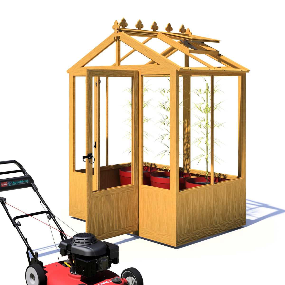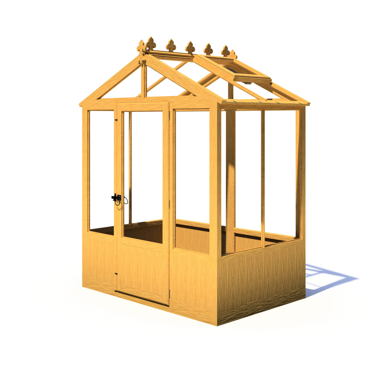 The Holkham Small 4x6 Wooden Glass Greenhouse is your gateway to a flourishing garden, designed to provide an ideal environment for your plants. With its compact dimensions, this greenhouse is perfect for small gardens, patios, or backyards, allowing you to cultivate a variety of plants regardless of the weather outside. The generous glass panels ensure maximum sunlight exposure, while the sloped roof design promotes effective rain runoff, creating a stable climate for your precious flora.