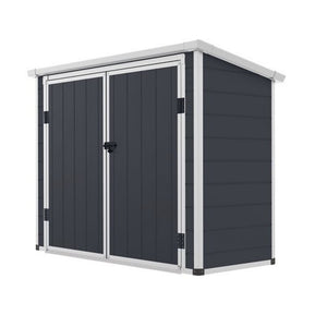 Transform your outdoor space into an organized oasis with the Jasmine 6x3ft Small Plastic Storage Shed. Perfectly designed for compact gardens and patios, this stylish storage solution keeps your gardening tools, children's toys, and seasonal decorations neatly tucked away, while its sleek dark grey finish adds a modern touch to your outdoor decor. Say goodbye to clutter and hello to a tidy, functional garden!