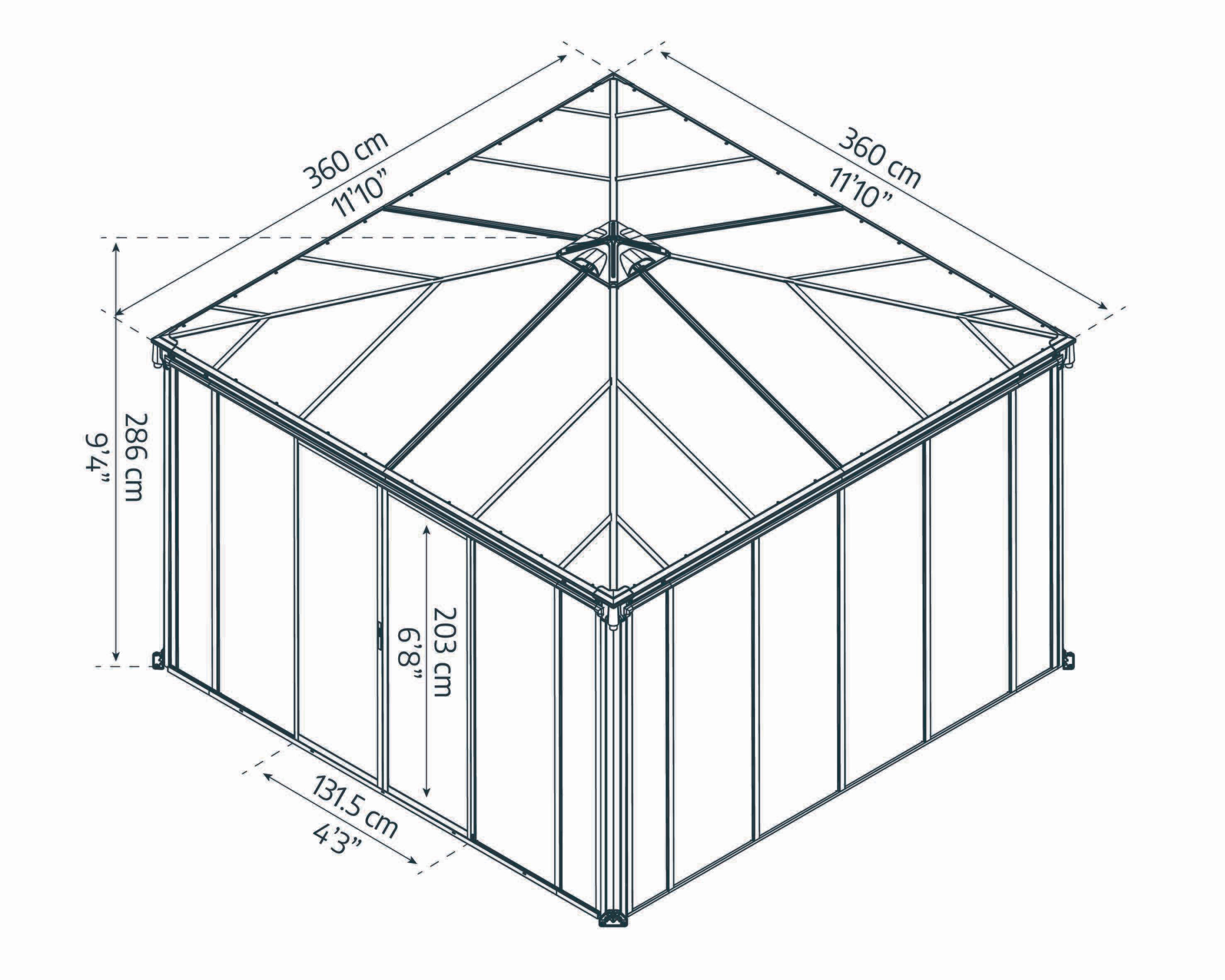 The Ledro 3600 is perfect for garden enthusiasts, families, and anyone looking to enhance their outdoor living space. Whether you want a stylish area for entertaining guests, a peaceful retreat for relaxation, or a functional greenhouse for your plants, this gazebo meets all your needs. Transform your garden into a year-round haven with the Ledro 3600, and enjoy countless memorable moments with friends and family.