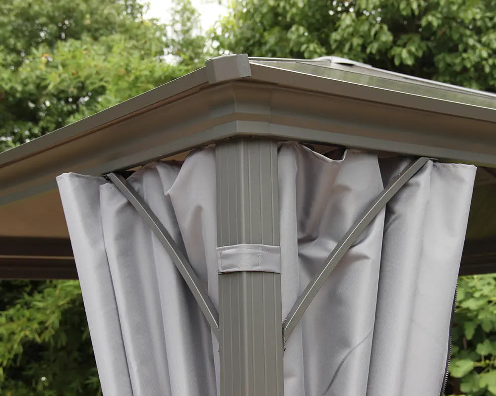 Lugano 3m x 3m Grey Aluminium Polycarbonate Gazebo & Pergola with Curtains