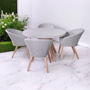 Luna 4 Seater Wooden & Rattan Weave Garden Dining Set- 120cm Round Concrete Table
