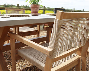 The Luna 6 Seater Wooden Garden Dining Set is your go-to solution for outdoor dining. With its spacious design, this set is perfect for hosting gatherings, enjoying family meals, or simply relaxing with a good book in the sun. The substantial concrete table serves as a stylish centerpiece, while the comfortable wooden chairs invite you to linger longer.