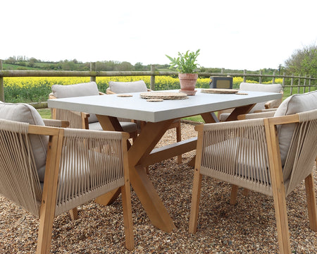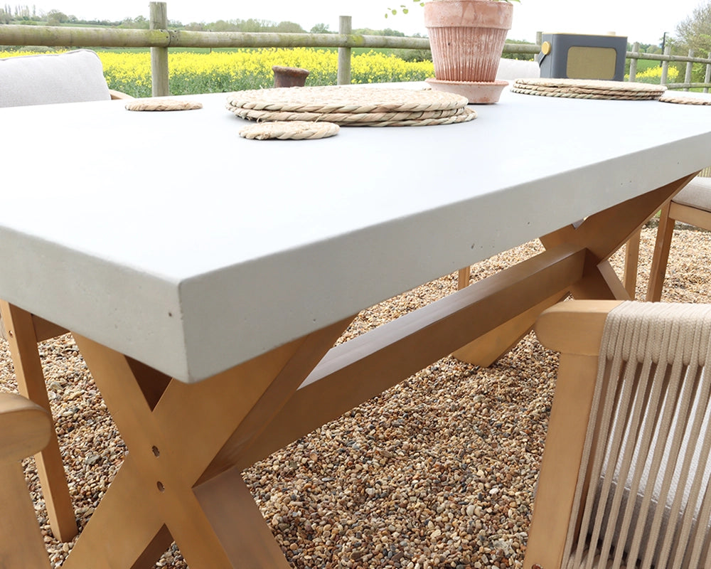 Luna 6 Seater Wooden Garden Dining Table Set with 180x90cm Concrete Table