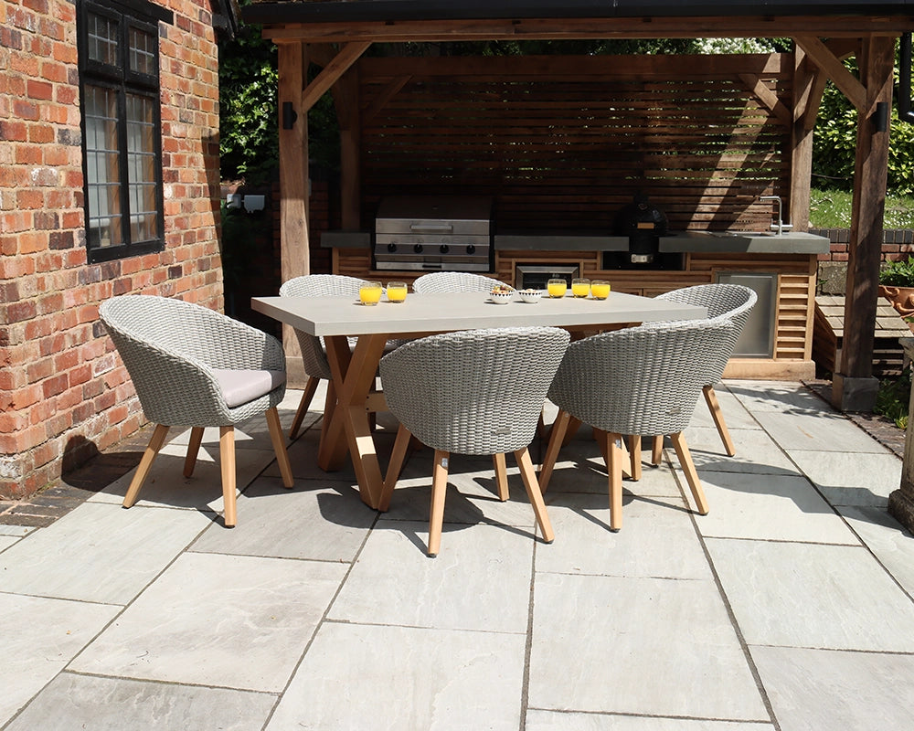 Luna 6 Seater Wooden & Rattan Dining Table Set with 180x90cm Concrete Table