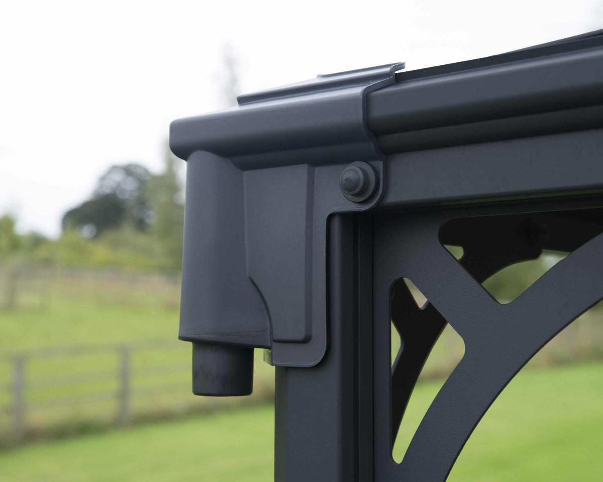 • Material Highlights: Durable powder-coated aluminium frame, 6mm thick twin-wall polycarbonate roof panels
