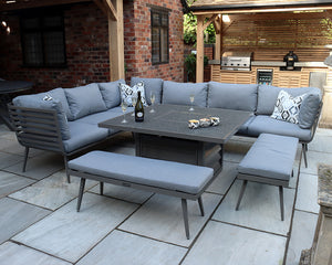 AnnetteMayfair 10 Seater Corner Lounge Set with Fire Pit Table - Grey Frame
