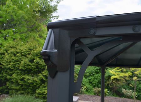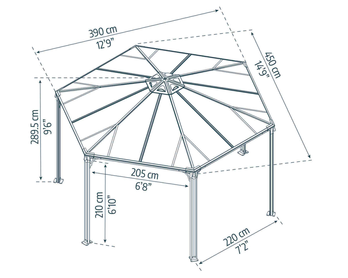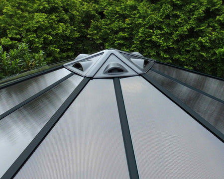 The Monaco Hexagonal Aluminium Grey Garden Gazebo & Pergola is a beautifully crafted outdoor structure that combines elegance with practicality. Its spacious hexagonal design provides ample room for gatherings, making it perfect for alfresco dining, celebrations, or simply enjoying a peaceful moment in your garden. The transparent polycarbonate roof allows natural light to filter through while protecting you from the elements, ensuring that your outdoor experience is enjoyable regardless of the weather.