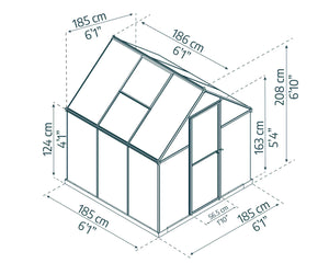 Transform Your Gardening Experience with the Mythos Greenhouse. Unlock the full potential of your garden with the Mythos Aluminium Frame 6ft x 6ft Green Polycarbonate Greenhouse by Canopia. Perfectly designed for the UK climate, this greenhouse offers a sanctuary for your plants, allowing you to cultivate flowers, vegetables, and herbs all year round. Its compact size makes it an ideal choice for smaller gardens or patios, ensuring that even the most modest outdoor spaces can flourish with greenery.